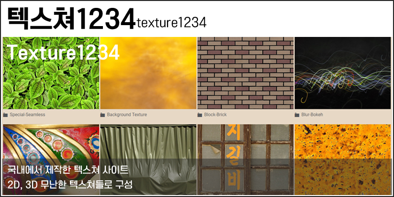특이사항: 국내 사이트, 간판과 같은 2D 텍스쳐, 3D Seamless 텍스쳐 제공
