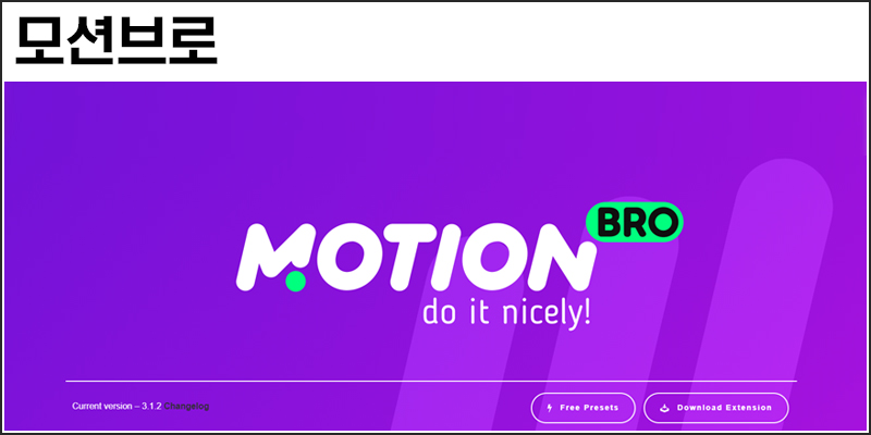 기능: 다양한 프리셋 및 애니메이션 효과와 컴포지션, 효과음 등을 손쉽게 적용시키는 플러그인