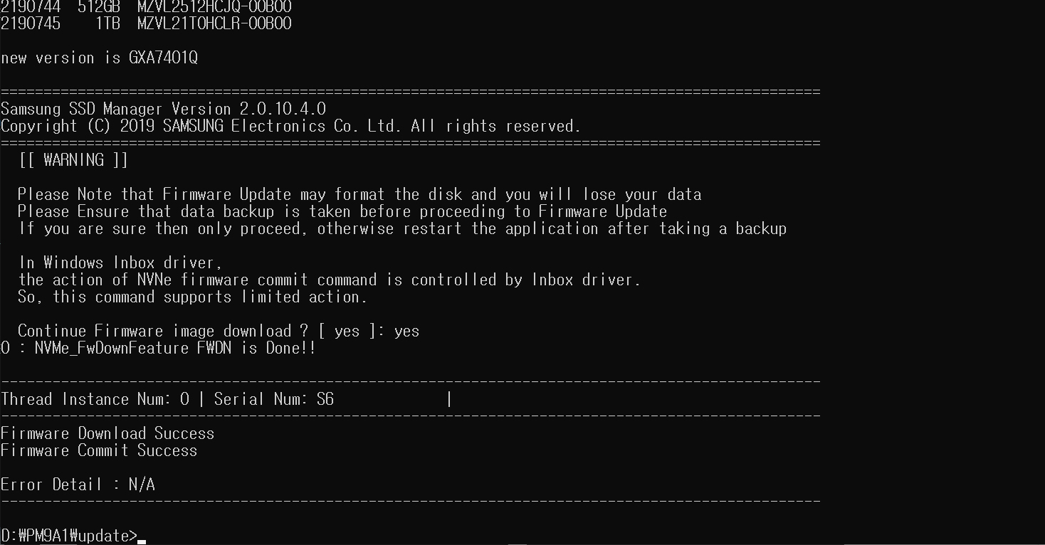 // 980 Pro의 경우 삼성에서 지원하는 소프트웨어로 업데이트가 되어 이슈가 해결됐으나, OEM 모델의 경우 프로그램 지원을 해주지 않아서 수동으로 업데이트를 해줘야합니다.