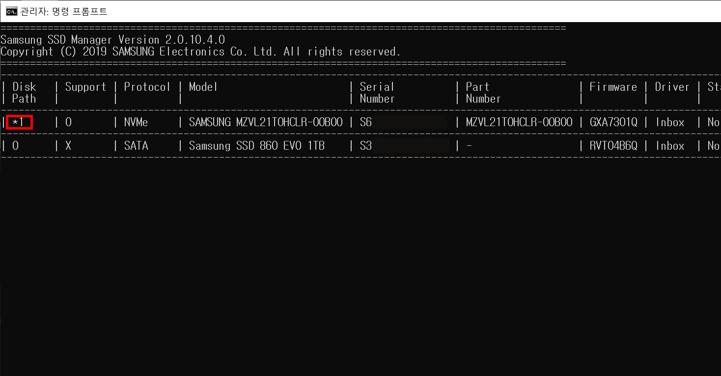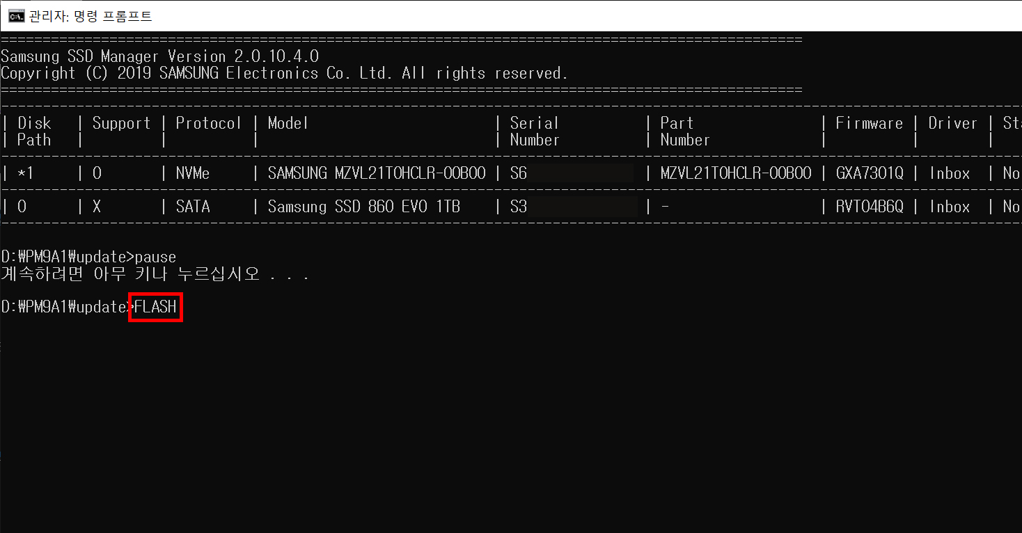 07. 디스크 패스가 0번이면 바로 09번으로 가주시면 되며, 저처럼 업데이트 하려는 SSD가 1번으로 뜬다면 08번을 따라해주세요.
