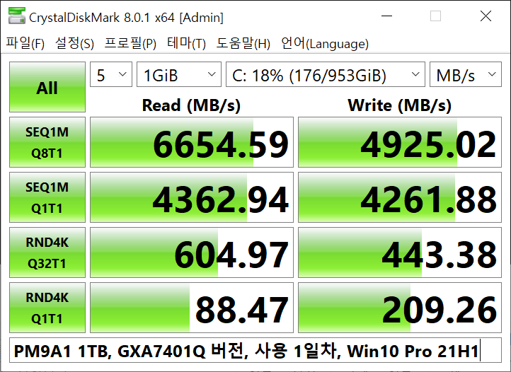 // 스펙 지표로 보면 이론상 6,900MB/s / 5,000MB/s인데 개인적으론 수치와 체감으로는 아직까진 준수합니다.