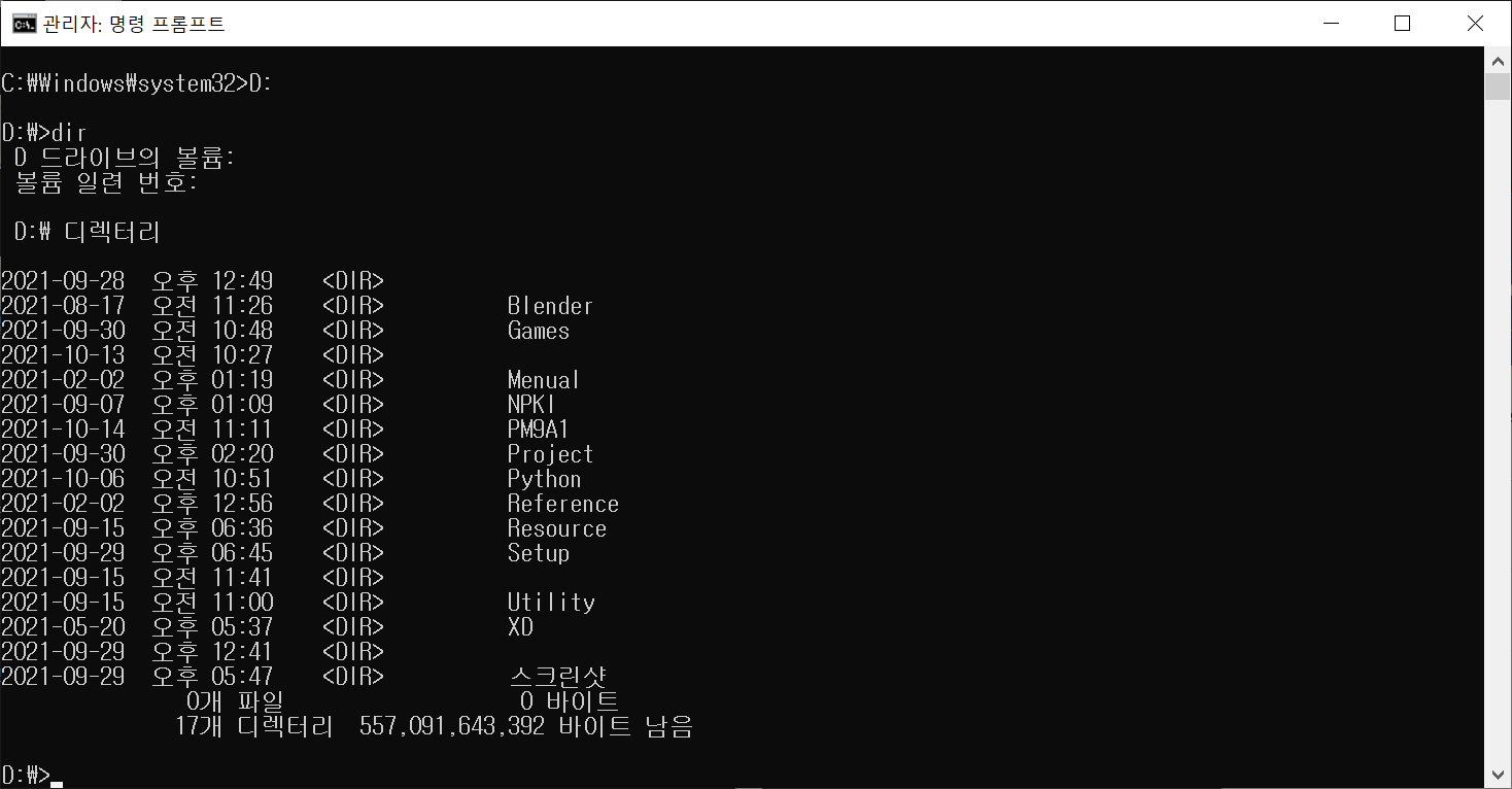 D: 를 입력합니다. (엔터)