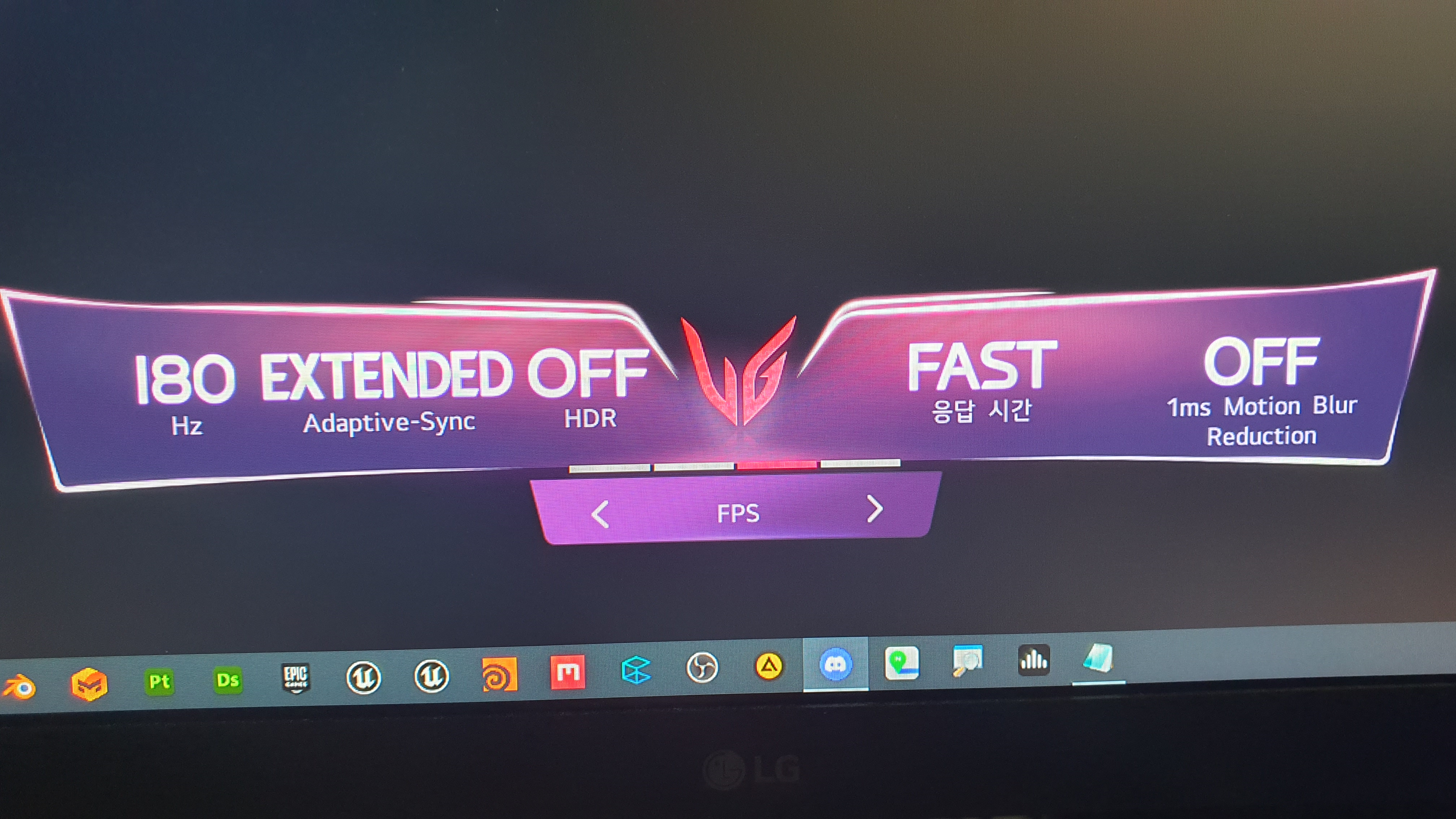 모니터 옵션에서 게임 조정 - Overclock 켜짐 후 엔비디아 제어판에서 지싱크랑 180Hz 재생빈도를 설정해주면 됩니다.