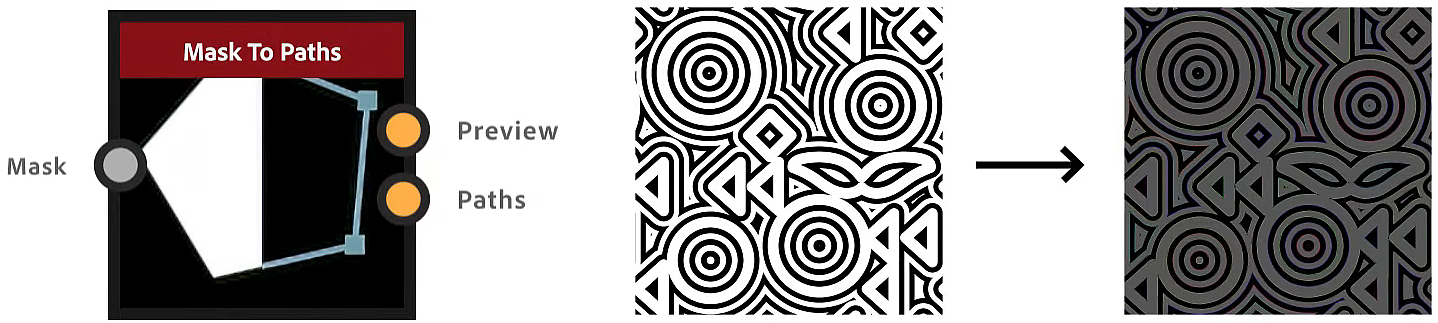 이 노드는 Mask to Paths 노드 다음에 사용되어 마스크 스플라인으로 변환하는 체인을 형성할 수 있습니다.