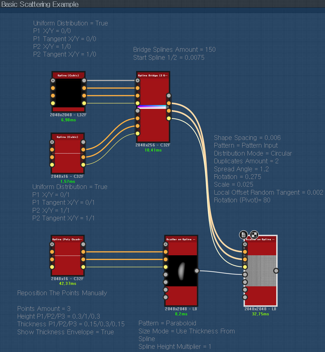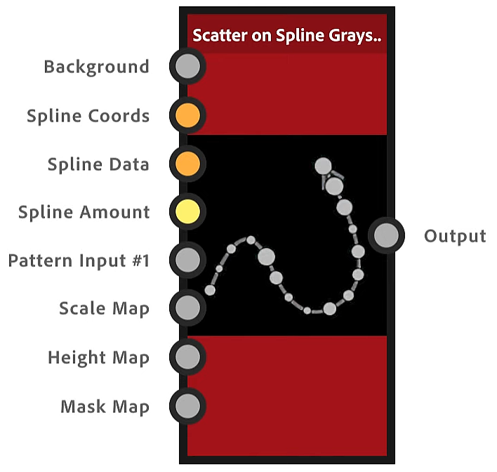 복제된 두 노드 세트를 Scatter on Spline Grayscale 노드로 연결해줍니다.